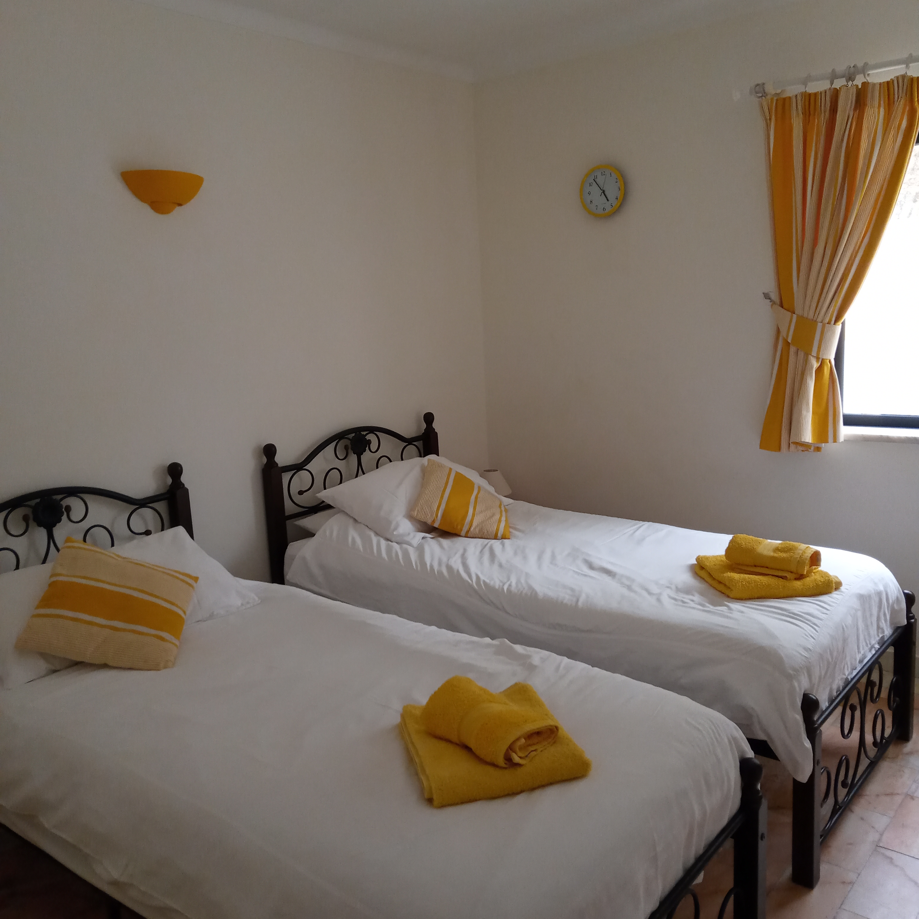 • The Yellow Room – bright and sunny with two single beds, wardrobe and side table